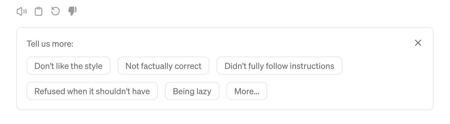 Giving opportunities for users to provide feedback helps improve the accuracy and reliability of AI systems over time. Informed data science teams can improve and tweak to make your product better.