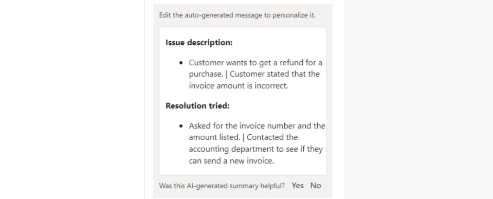 Microsoft's Dynamics 365 allows you to edit AI generated summaries.