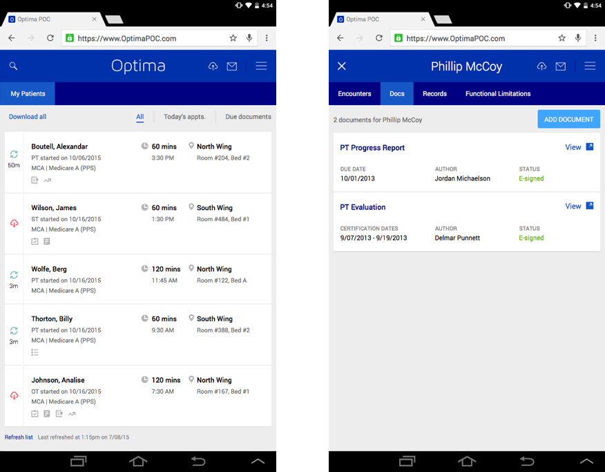 On the left you can see the UI for the daily schedule, and on the right you can see some documents now stored digitally with esignatures. No more paper!