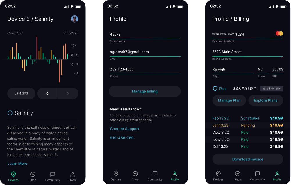 This was a quick side hustle UI for an agro-tech startup here in NC. Had a lot of fun meeting and working with the client and hope to do some UX workshops in the future. Looking forward to getting customer feedback and any usability concerns in this mobile-first app.